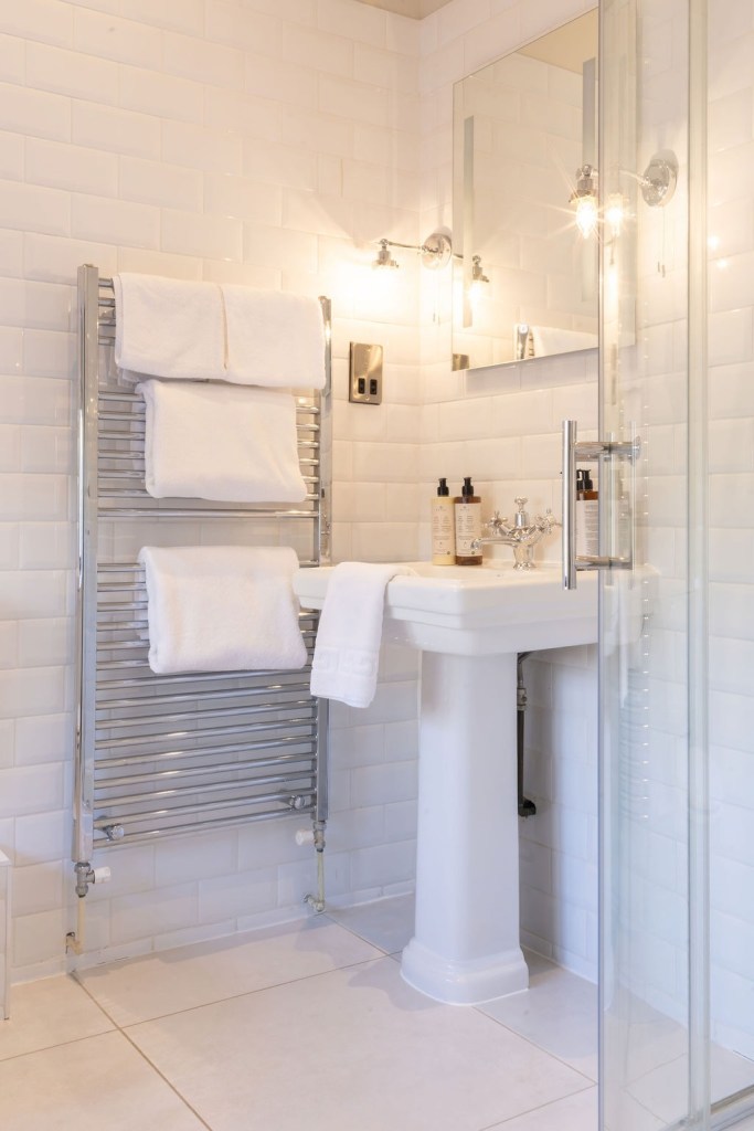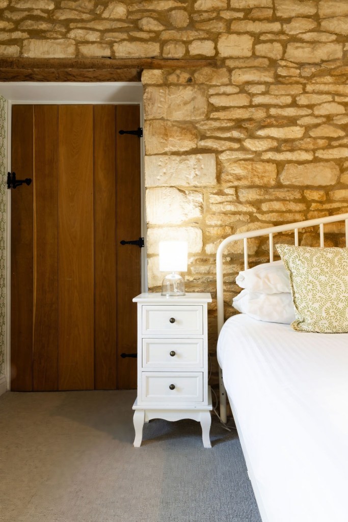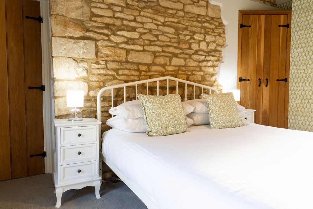 This vibrant wall papered room, with spacious shower room gives off really cosy vibes. Overlooking the River Windrush, it also has a lovely original Cotswold stone wall, and high ceiling.